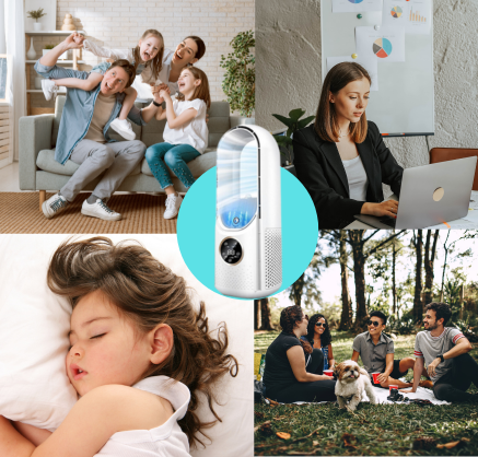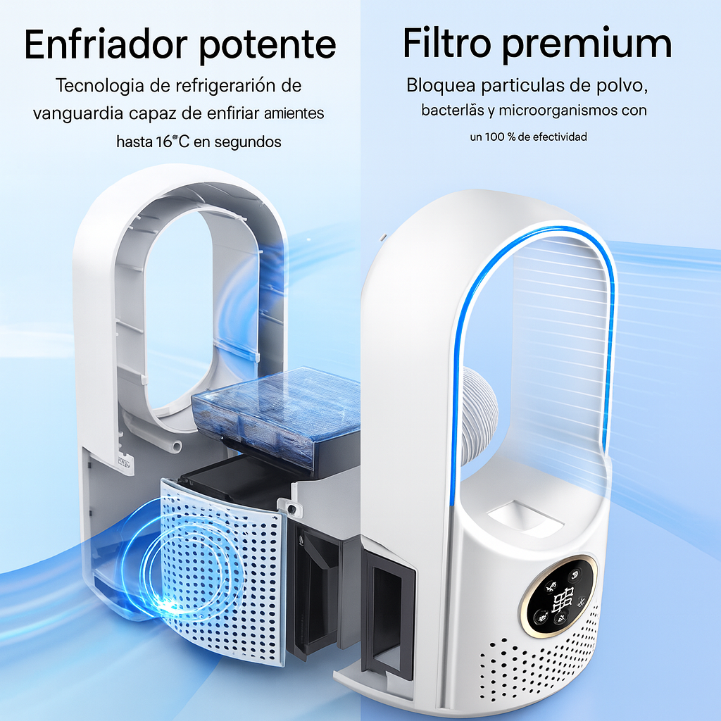 Diseño sin aspas y seguro: Ideal para casas con niños y mascotas, con un diseño seguro e inteligente.